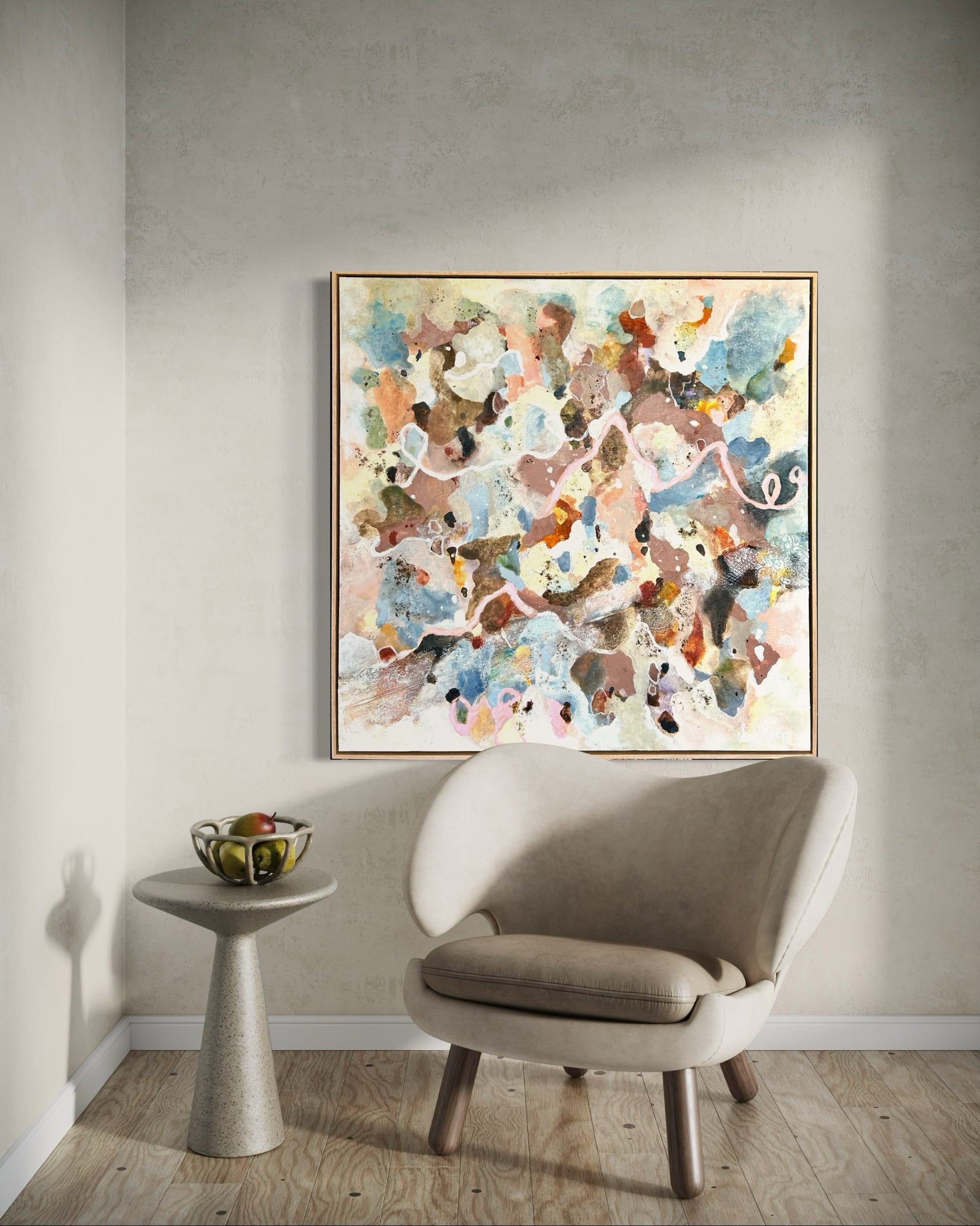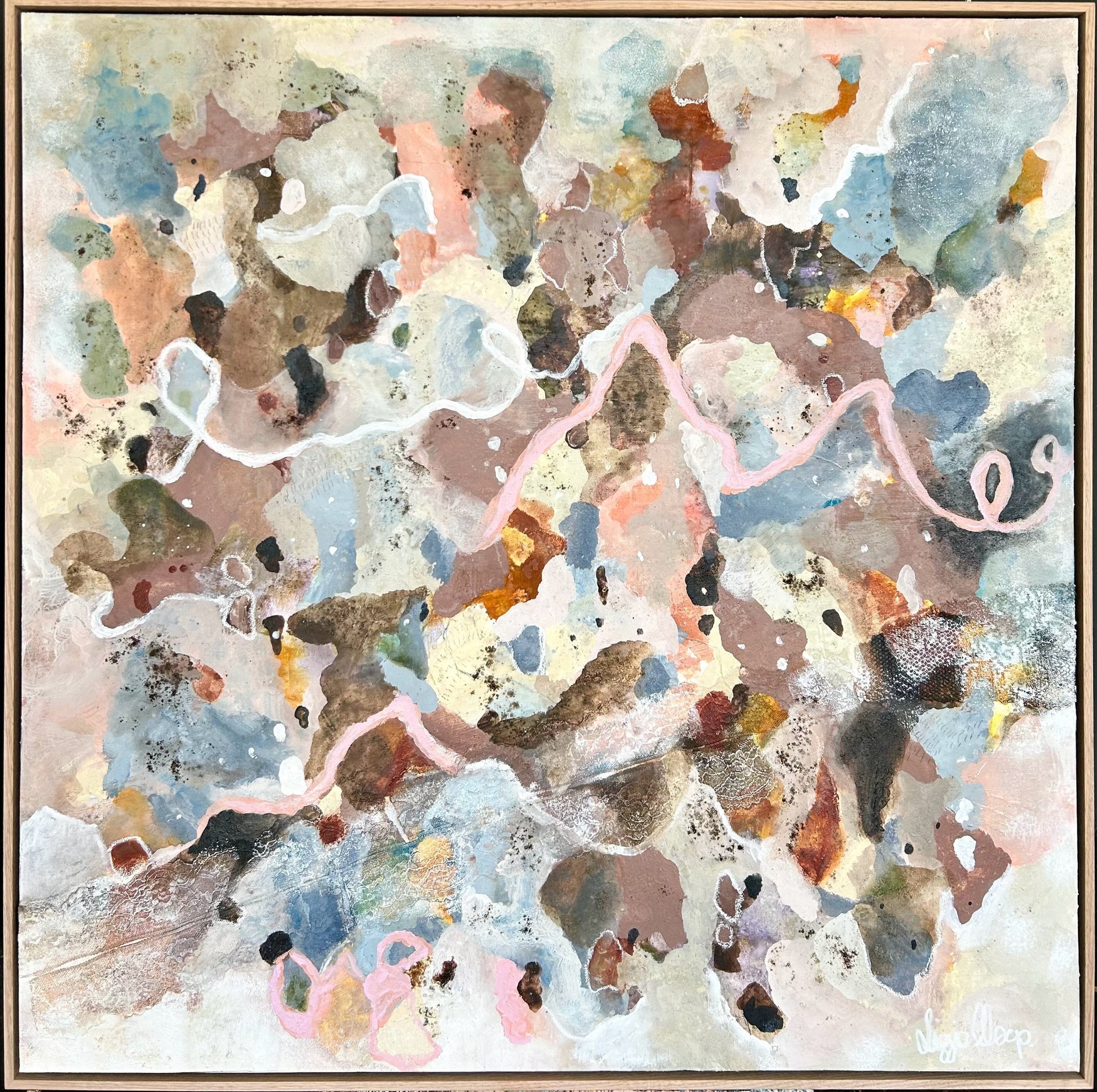 Original artwork measuring 105 x 105cm ( including oak frame)